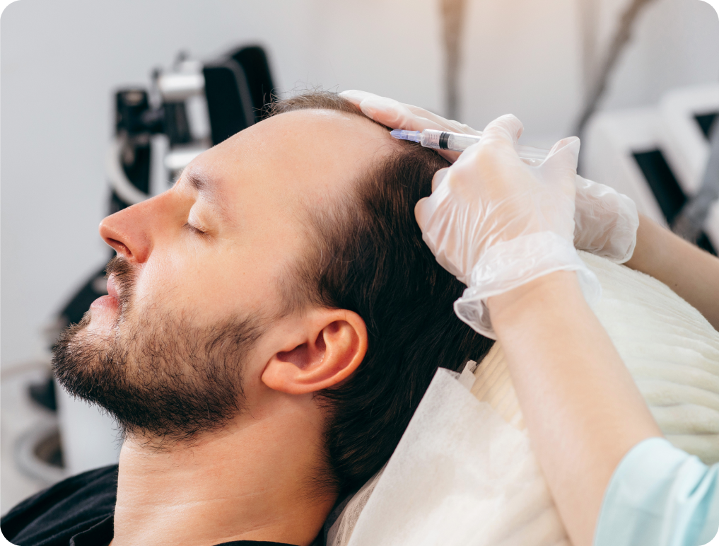 Tratamiento con factores de crecimiento obtenidos de la propia sangre del paciente para activar la regeneración folicular.