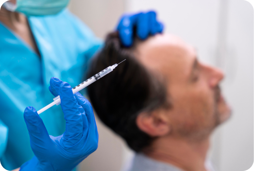 Aplicación mediante microinyecciones superficiales de activos específicos para nutrir el folículo y mejorar su actividad.